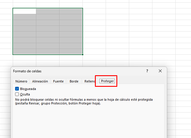 4. Selecciona las celdas que deseas proteger y vuelve a marcar la opción Bloqueada.