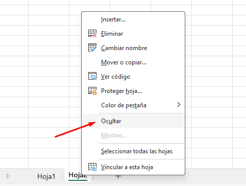 1. Haz clic derecho en la pestaña de la hoja y selecciona Ocultar.